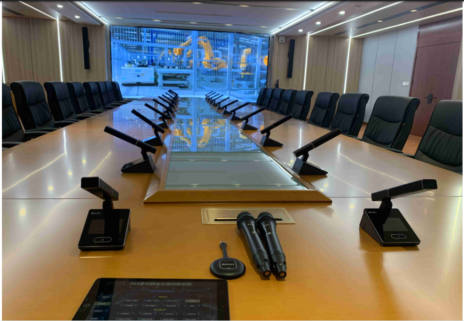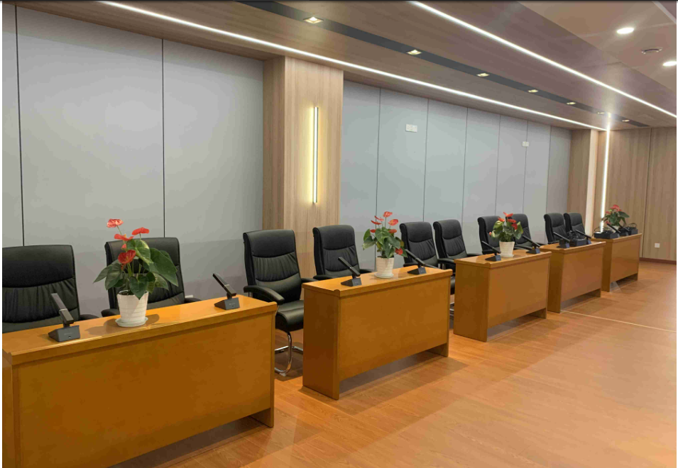 公司為會議發言配置雙振膜觸控式會議單元HY-6320系列,支持數量限制、先進先出、后進先出、主席允許、限時發言、排隊發言、自由討論共八種會議模式,以適應多種類型會議場合。