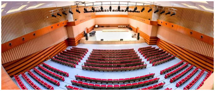 “琴島”音樂(lè)廳建筑面積2100平方米,內(nèi)部結(jié)構(gòu)呈扇形狀,扇形音樂(lè)廳的天頂呈等勢(shì)的遞進(jìn),目的是令聲學(xué)能量均勻擴(kuò)散。在這種音樂(lè)廳中,聲樂(lè)的直接信號(hào)更容易送達(dá)。