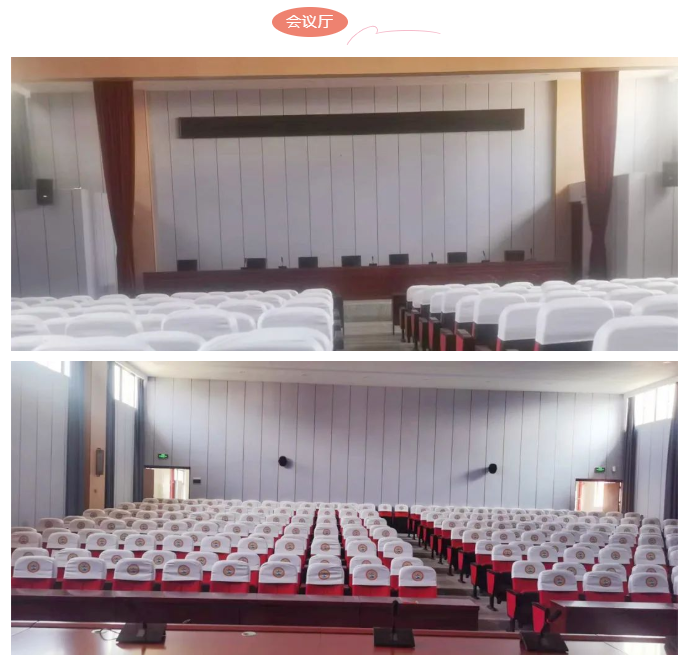 在會議廳這里,選用了2只SP12作為主擴聲音箱,6只Impulse8作為補聲音箱,加上一臺MA1410-F調音臺,滿足各種會議進行所需的聲音要求。