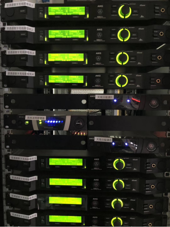 演藝廳舞臺(tái)左右兩側(cè)吊掛了各6只EV8寸線陣列覆蓋觀眾席,M15全頻音箱做下拉聲像揚(yáng)聲器,B30超低音在舞臺(tái)下的預(yù)留孔洞中,臺(tái)唇位置設(shè)置了4只緊湊型的C5同軸揚(yáng)聲器覆蓋前三排觀眾,4只M12多功能揚(yáng)聲器作為舞臺(tái)流動(dòng)返送,全部的音箱都由系統(tǒng)功率放大器PLM12K44驅(qū)動(dòng),PLM12K44是一款4通道可遠(yuǎn)程監(jiān)控的DSP功率放大器,內(nèi)置EV的揚(yáng)聲器預(yù)設(shè),便于使用者對(duì)揚(yáng)聲器進(jìn)行操控管理。演藝廳的擴(kuò)聲系統(tǒng)還使用了16個(gè)通道的AKG DMS800數(shù)字無線系統(tǒng)。