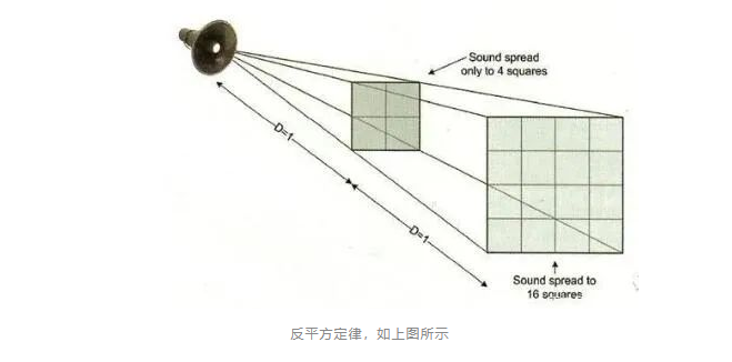 如果距離聲源的距離每增加一倍,那么聲功率就會減少為原來的四分之一,我想這一點(diǎn)很多人都是知道的。這一定律幾乎可以適用于所有的地方,無論是麥克風(fēng)還是揚(yáng)聲器陣列。了解這一定律,對于我們確定功率放大器所需的功率十分重要。