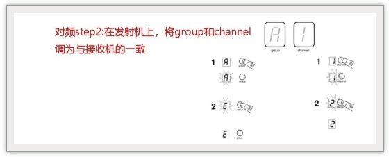 2、打開(kāi)對(duì)應(yīng)發(fā)射機(jī)的電源,將組和頻道更改為與接收機(jī)匹配。