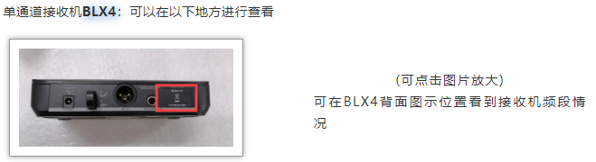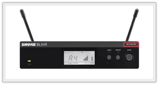 單通道接收機(jī)BLX4R,頻段信息可以在面板上看到,標(biāo)識(shí)位于右上角,如圖所示