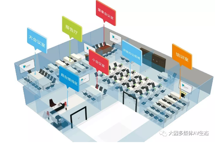 現(xiàn)代型會(huì)議室最基本的用途是討論會(huì)議、視頻會(huì)議、工作匯報(bào)等。因此需要滿足會(huì)議語言類的擴(kuò)聲和視頻顯示的功能。同時(shí)如果作為分會(huì)場(chǎng)使用時(shí)需要滿足把主會(huì)場(chǎng)的音視頻信號(hào)實(shí)時(shí)的發(fā)送到會(huì)議室來。