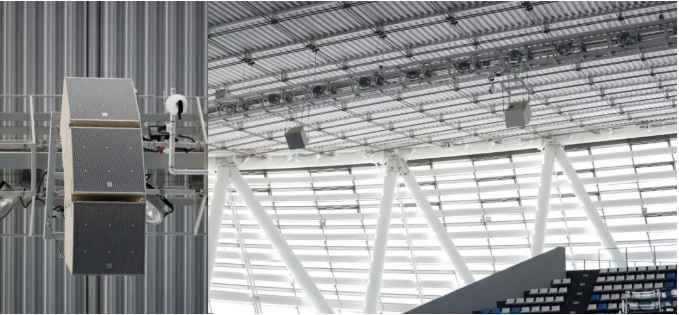 經過再三研究、博世團隊借鑒了之前給倫敦碗提供的安裝方式,邀請了專業的設計人員在每個鎖頭上設計了一個安裝點并安裝滑輪,通過卷揚機把揚聲器卷上去,當檢修時則采用同樣的方式將揚聲器卸下,攻克了吊掛技術難點。