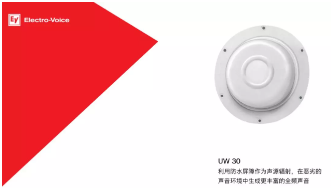 考慮到潛游以及水下花樣游泳的訓練和表演,我們還在游泳池底部選用了EV旗下UW30系列水下揚聲器,確保在水中的人可以清晰地聽到音樂以及岸上人員通過麥克風傳遞的信息,而不需要另外的接收器。