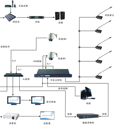 中央控制系統集中了燈光、機械、投影及視音頻控制手段于一體,為使用者提供簡單、直接的控制方案,令使用者能方便地掌握整個空間環境音響設備的狀態及功能。本系統可對會議室內各種音視頻設備及燈光、電動窗簾、電動投影幕、電動升降吊架等設備采用集中控制方式,以方便操作和使用。包括數字會議發言、討論設備開啟、關閉;攝像球的轉動、鏡頭控制;會議廳音響系統的開啟、關閉、音量調節;會議廳投影機、液晶顯示器的開啟、關閉;視頻矩陣的切換、選擇;會議廳照明燈光的明暗調整;液晶顯示器升降控制等。.png)