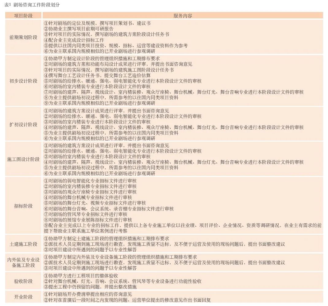 在劇場的建筑、功能布局、交通流線、功能用房面積分布、舞臺機械、舞臺燈光、舞臺音響、暖通給排水機電設(shè)備、弱電智能化裝修、建筑聲學(xué)、座椅、園林景觀、節(jié)能環(huán)保、標(biāo)志標(biāo)識的設(shè)計、招標(biāo)、采購、施工及驗收等重要節(jié)點,及后期運營、物業(yè)管理等方面的咨詢服務(wù)。