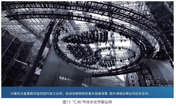匯焰的吊掛安全管理系統(見圖12)具備完善的預警監測功能,除了稱重超載報警監測功能,還具有硬件限位、軟件限位、自動組停、SIL2安全防護等級安全急停,以及電機溫度監控等功能,為大型混合吊掛系統提供了多角度自適應的安全保障能力。其中一個亮點是匯焰稱重式卸扣,能實時監測載荷重量,具有超載預警功能,可方便組網使用。