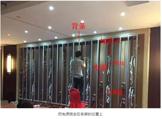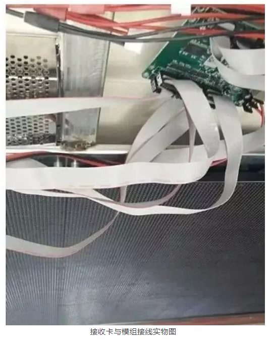 從配電室到LED顯示屏配電柜的電纜在安裝屏幕之前就必須布置好,電源接好后裝控制卡,控制卡這里用的是同步接收卡。整個(gè)電源和控制卡的布置,LED顯示屏出廠(chǎng)都是有《電源及系統(tǒng)布線(xiàn)圖》的,只要嚴(yán)格參照?qǐng)D紙走線(xiàn)就不會(huì)出錯(cuò)。一般工程師自己根據(jù)電源和卡的數(shù)量也可以估算出走線(xiàn)方式。