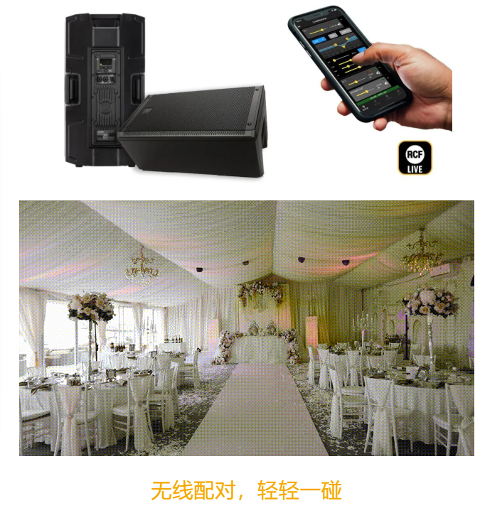 借助RCF超低音揚聲器的內部現成預設,音響系統可以完美校準,只需幾個步驟即可開始運行。