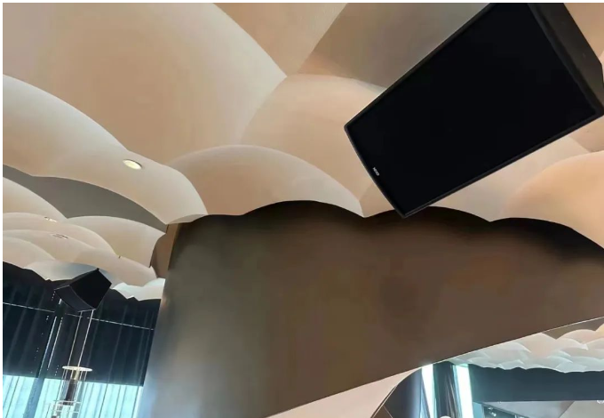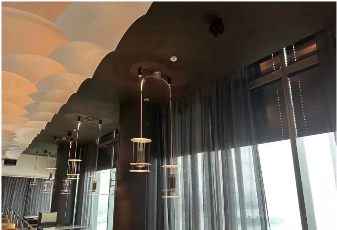 全體NEXO音箱吊掛部署,小體積且低調的外觀,輸出的聲音清晰而優美,讓它很好地融入到環境中。現場工作人員認真負責,很快就把音箱全部吊裝起來。酒店方感到非常滿意。