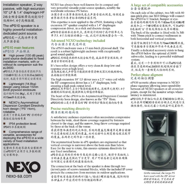 這里的環境十分優雅,而且玻璃區域較多,不需要很強烈的擴聲系統。因此選擇部署NEXO的小型全頻系統。上海弘韻智能系統工程有限公司的設計人員利用NEXO專用仿真模擬聲壓測試軟件NS-1對場地進行構建,并與酒店方的團隊討論選項和限制。最終選擇了NEXO ePS10全頻音箱,ID14同軸全頻音箱和IDS110超低頻音箱搭配使用。ePS10單10寸全頻音箱采用長沖程10寸低頻單元和1.4寸音圈高頻壓縮驅動,低音反射式設計,箱體利用樺木膠合板,堅固且重量輕。在70Hz到20KHz的頻響實現130dB的峰值聲壓,多用于小型主擴聲與舞臺返送監聽。ID14的核心采用定制開發的同軸單元,1.3寸音圈的4寸低頻驅動器和1.4寸振膜的高頻驅動使它能輸出平滑,干凈的聲音。可輸出116dB的峰值聲壓,兩種號角可改變擴散角度,讓它應用到不同的環境中。作為NEXO現有產品體積最小的音箱,多用于小型環境補聲和全景聲。IDS110超低頻音箱采用長沖程10寸單元,可輸出125dB的峰值聲壓,多用于搭配ID系列的低頻補充。