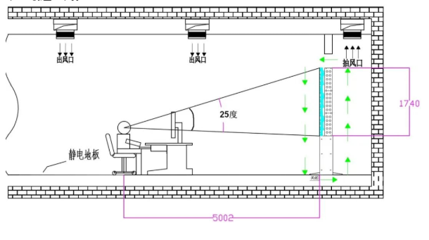 2) 大屏幕顯示墻與維修通道的地面最好能涂地面防塵漆,能有效防止地面灰塵對顯示光學設備的影響。
