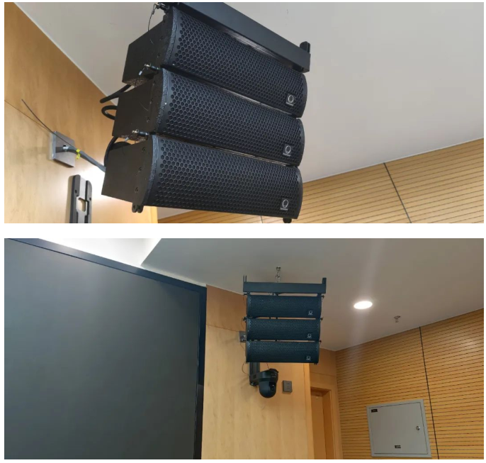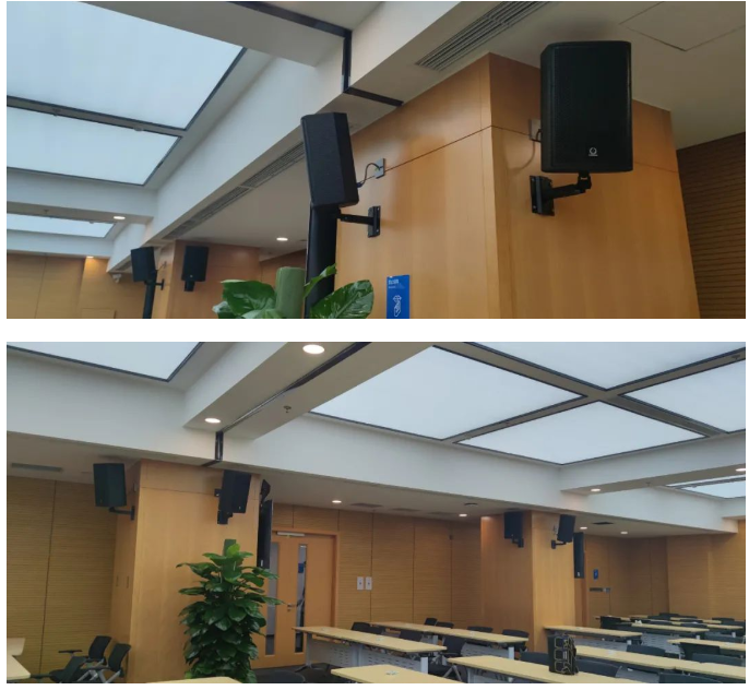 在報(bào)告廳中后場兩側(cè)。每只音箱的輻射角度都經(jīng)過專業(yè)且細(xì)致的調(diào)整,確保室內(nèi)聲場覆蓋均勻。這都得益于TURBOSOUND在產(chǎn)品設(shè)計(jì)方面做到真正的精益求精。