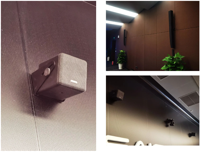 上汽集團總部VR演播報告廳的大屏是一塊國內(nèi)唯二的定制曲面屏,在任何觀看角度都能獲得極致的觀看體驗。為了盡可能減少擴聲系統(tǒng)布置給觀看環(huán)境帶來的影響,我們均采用了超緊湊設(shè)計的音響系統(tǒng),設(shè)計配置6只SAL L16j弧形音柱,若干只袖珍型i4、i5同軸揚聲器,搭配G Sub 1201超低揚聲器。
