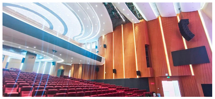 根據(jù)項目需求結(jié)合使用場地勘測情況,設(shè)計團隊最終選用:擁有90年研發(fā)設(shè)計與生產(chǎn)經(jīng)驗的英國著名音響品牌—Mission的音響設(shè)備作為本次項目的主擴音頻系統(tǒng),選用擁有45年研發(fā)設(shè)計與生產(chǎn)經(jīng)驗的英國品牌Mission作為本次擴聲音頻處理系統(tǒng)。 主擴聲系統(tǒng)采用左右兩聲道擴聲設(shè)計形式。選用Mission的WLA-210X線陣音箱,搭配WLA-210XSUB線陣次低頻音箱,懸掛于舞臺兩側(cè),直達覆蓋觀眾區(qū),主要負責(zé)音樂信號的重放、語言類及樂器信號的擴聲,能最大程度減少多余混響能量的影響,保證活動時聽眾都能接收到均勻的聲能。 采用WLA-218B超低音箱,確保在演出模式下提供良好的低頻動態(tài),還原演出時震撼的音樂效果。 拉聲像音箱采用了WZ-1596 15"全頻音箱,起到拉聲像作用,覆蓋前場觀眾席區(qū)域。臺唇音箱采用了Programma105全頻音箱,頻率響應(yīng)在整個音域范圍內(nèi)平滑自然,凸顯出中性的、未染色的聲音本質(zhì),可彌補觀眾席前區(qū)中心位置主擴聲覆蓋不到的缺憾。 舞臺流動返聽采用了DM12全頻音箱,直接作為歌手及主持的監(jiān)聽音箱。
