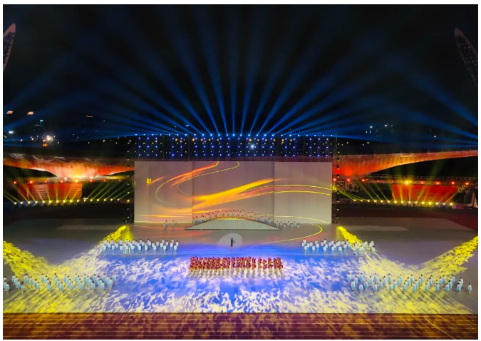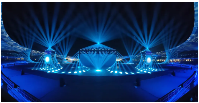 為確保現場最佳的視聽體驗效果,本屆體育大會擴聲系統采用源自德國的EV32只X1I-212/90-FGB垂直線性陣列搭配12只X2-212/120心形指向性超低作為主擴組合,16只EVF-2151D垂直線性陣列搭配4只X12-128次低頻音箱及8只EVF-1181S超低音箱作為兩側補聲組合,主席臺和演員返聽由8只多功能鏡像全頻揚聲器MFX-15MC擔任,整個擴聲系統由32臺PX5:4功放進行驅動。