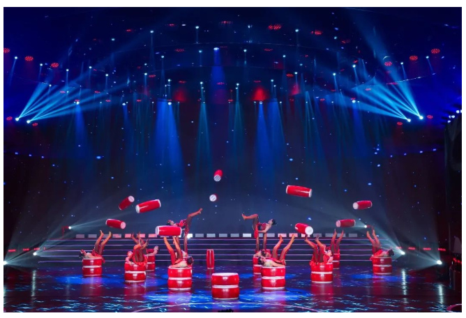 雜技《鼓與呼》通過傳統雜技蹬鼓表演,配合昂揚有力的鼓樂節奏,呈現力與美的視覺盛宴,展示昂揚向上的奮斗精神和時代風貌。