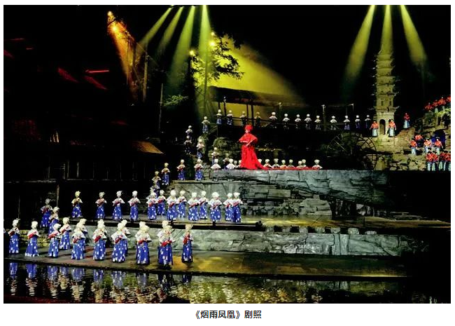 其實(shí),這個(gè)方法之前也曾多次使用。不過(guò)這次的實(shí)踐讓筆者發(fā)現(xiàn),很多情況下聲音的獨(dú)特效果可以根據(jù)舞美場(chǎng)景,甚至利用舞美裝置的特性來(lái)實(shí)現(xiàn)。這一點(diǎn)以后也可以繼續(xù)跟音響師們研究探討,從中發(fā)現(xiàn)、挖掘并再現(xiàn)出契合戲劇創(chuàng)意的聲音效果。例如,國(guó)外有的錄音棚用老教堂或者工廠廠房改造,以得到想要的聲音效果,包括好萊塢的電影錄音。這具有無(wú)限拓展的可能性,因?yàn)槊恳环N聲音在不同的空間都會(huì)是不同的,關(guān)鍵也在于音響師是否有主觀創(chuàng)新的想法,畢竟對(duì)于多數(shù)戲劇音響設(shè)計(jì)來(lái)說(shuō),音響師首先要保證的是戲劇對(duì)聲音的基本要求,然后才是個(gè)性化需求。另外,音響師對(duì)舞美空間的解讀也尤為重要,舉個(gè)例子,幾年前參加湖南鳳凰的《煙雨鳳凰》實(shí)景演出項(xiàng)目的舞美設(shè)計(jì),景的縱深有50 m多,一側(cè)是用于造景的山,一側(cè)是吊腳樓,中間風(fēng)雨橋作為兩者的連接,遠(yuǎn)處縱深就是利用實(shí)景的山和樹(shù)林。該劇的音響師就根據(jù)這樣一個(gè)悠遠(yuǎn)的空間環(huán)境,制造從左到右的聲像差,形成由遠(yuǎn)及近的聲音效果,的確讓觀眾感受到了空間距離上聲音傳遞效果,十分契合舞美所營(yíng)造出的氛圍。
