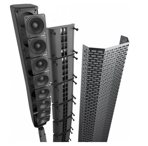陣列的外箱由耐用的復(fù)合材料制成,并配有符合人體工程學(xué)的鋁制把手。超低音采用15mm木制外箱,里面含有一個(gè)12寸低音單元,采用高效的層流通風(fēng)口設(shè)計(jì)。陣列和超低通過(guò)對(duì)稱(chēng)的鋁桿與內(nèi)部布線和磁吸閂鎖連接。揚(yáng)聲器裝有一個(gè)黑色粉末噴涂的18 gauge標(biāo)號(hào)鋼制網(wǎng)罩作保護(hù)用途,還包含一個(gè)陣列/拉桿運(yùn)輸箱。先進(jìn)的D類(lèi)放大器可提供高達(dá)1,000W的功率。