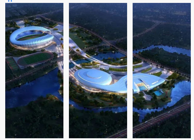 廣東省第十六屆運動會暨第九屆殘疾人運動會將于2022年11月5日開幕。屆時,清遠預計迎來2.1萬名運動員、教練員等相關參賽人員,并將創下廣東省運會歷史上“粵北地區城市第一次獨立辦賽”、“競技體育和群眾體育賽事第一次合辦”以及“參賽規模歷屆第一”的“三項第一”。本次運動會主場館——清遠奧體中心意在打造“鳳城”地標,規劃概念源于清遠“鳳舞綠都”之稱。“一場兩館一公園”呈“鳳凰”雛形布局,整體造型如一只扶搖而上的鳳凰,飛舞在綠水青山間。項目包括一個30000座體育場、一個9000座體育館、一個2000座的游泳館以及戶外體育公園,通過對場館座席的調整可滿足大型賽事、演唱會、歌舞劇、雜技演藝、會展展示等不同功能要求,從而打造體育、演藝、服務城市綜合體。
